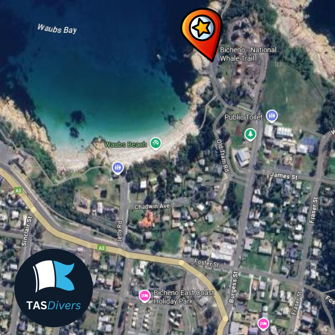Location: Bicheno Breakwall, Waubs Bay (google Bicheno Whale Trail, end of Burgess Street, Bicheno)